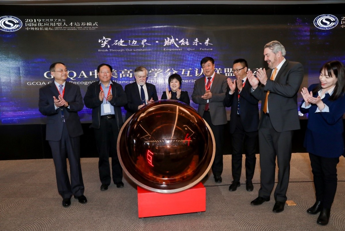 2019年3月21日,由教育部留學服務中心主辦、澳客 集團承辦的2019中國留學論壇分論壇——國際化應用型人才培養模式中外校長論壇在北京僑夢苑舉行,來自中國、美國、歐洲、澳洲的高校校長、全球職業與教育品質評估認證機構(GCQA)負責人、外方高校駐華代表處代表以及教育界專家一百多人參加了此次論壇。論壇以“突破邊界、賦能未來”為主題,聚焦應用型人才培養,共同探討中外教育國際合作新模式。此次會議上,全球職業與教育品質評估認證機構(GCQA)與澳客 集團聯合發起了中美高校學分互認合作聯盟。